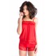 Ensemble 2 pièces satiné comprenant : 1 caraco Bretelles réglables. Bande en dentelle et plis décoratifs devant. Bande élastique au dos. 1 short Taille élastique. Bandes en dentelle devant.Destinataire :